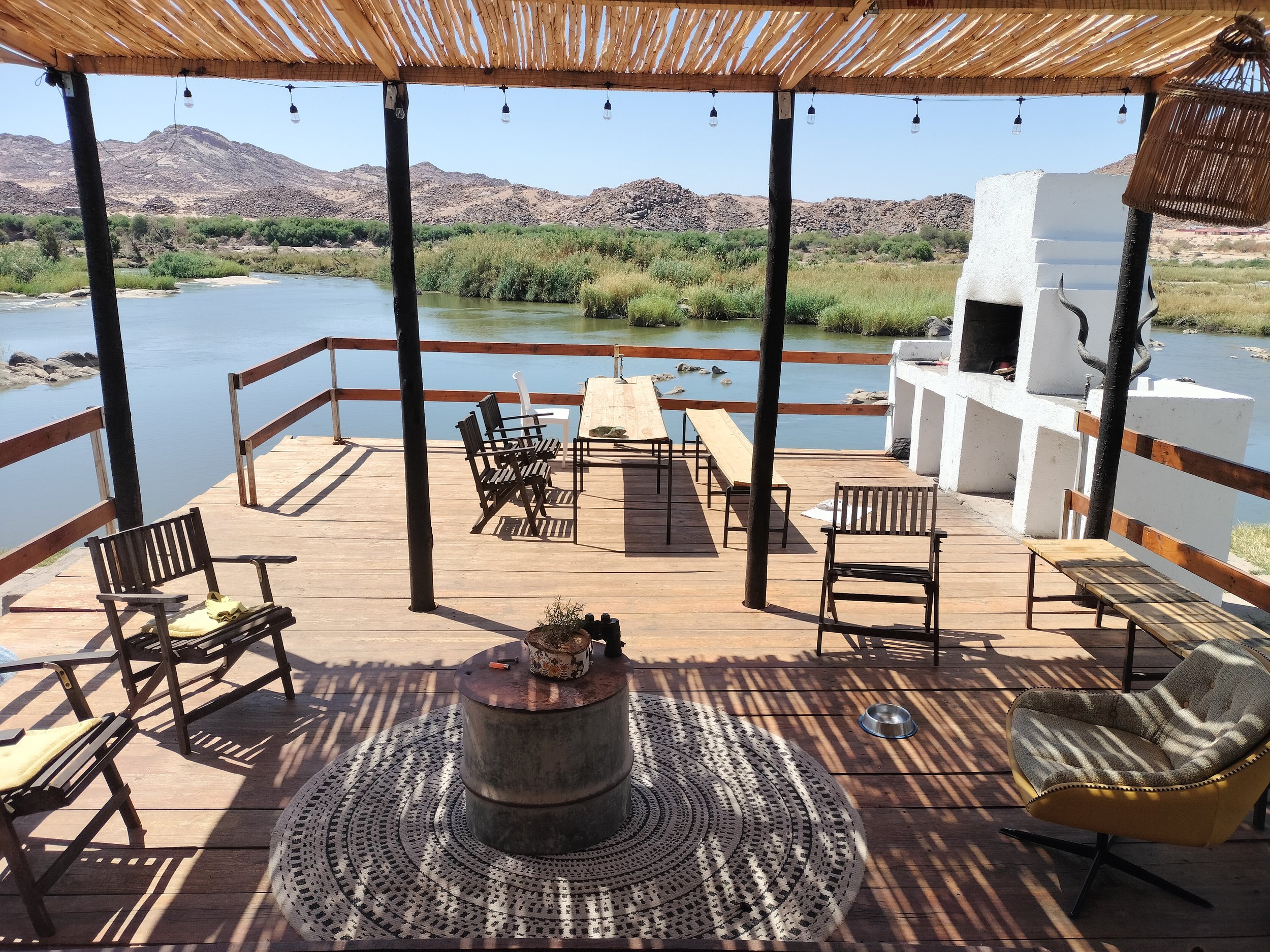 OUR DECK OVERLOOKING THE RIVER AND THE NAMIBIAN LANDSCAPES